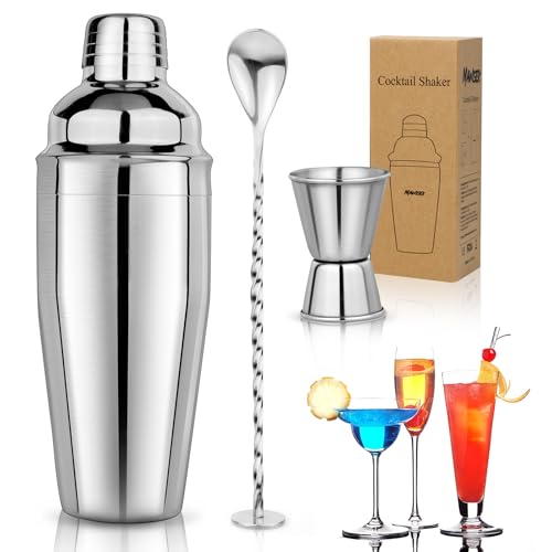 - ๐น Ultimate All-in-One Cocktail Set: Perfect for both budding home bartenders and seasoned mixologists, this 25 oz cocktail shaker set includes everything you need to craft exceptional drinks. Features an airtight lid with a built-in strainer, a versatile two-sided jigger (0.5 oz & 1.0 oz), and a screw-design cocktail stirring spoon, to inspire your mixology creativity.